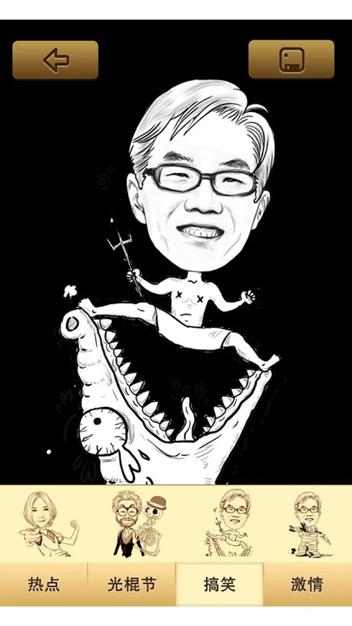 Caricatura feita, daí, é só salvar ou compartilhar no Facebook.